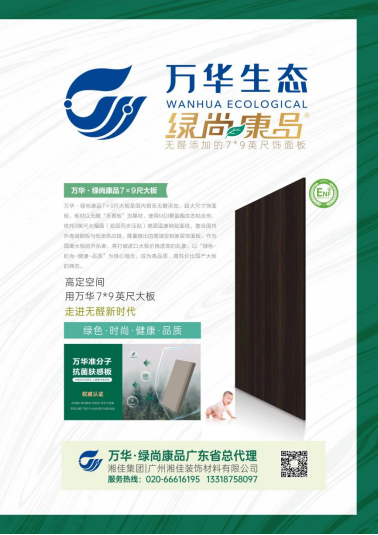 湘佳集團•福臨板材代理(廣東、云南兩省)的“萬華·綠尚康品”7×9尺大板,是國內首張無醛添加、超大尺寸飾面板,該板材以無醛“禾香板”為基材,使用MDI聚氨酯生態粘合劑,依托9英尺大幅面(雙層同步壓貼)德國溫康納貼面線,整合國內外高端鋼板與紙張供應鏈,隆重推出的高端定制家居飾面板。作為國潮大板的開拓者,“萬華·綠尚康品”將打破進口大板價格虛高的亂象,成為高品質、高性價比國產大板的典范!