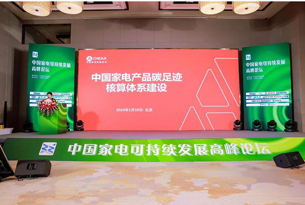 北京,2024年1月18日 — 由中國家用電器協會主辦的“中國家電可持續發展高峰論壇”于昨日在北京盛大召開。此次論壇以“綠色低碳,邁向可持續”為主題,旨在推動中國家電行業實現可持續發展,并發布了全球首個家電產品碳足跡核算系列標準,標志著中國家電行業在綠色低碳領域邁出了關鍵一步。