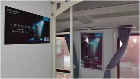 在一夜間,美的熱水器的品牌廣告強勢占領北京、上海、廣州、長春等20多個核心城市的列車樞紐站,廣告全面涵蓋了列車內所有顯眼位置。