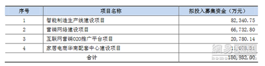 根據(jù)招股書(shū)資料,本次發(fā)行募集資金投資項(xiàng)目主要是擴(kuò)大公司現(xiàn)有定制家具的產(chǎn)能,以及擴(kuò)充公司現(xiàn)有的營(yíng)銷(xiāo)網(wǎng)絡(luò)。