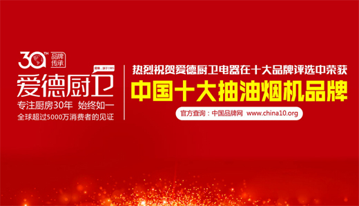 在品牌林立的廚衛行業里,想要消費者認定自身品牌是個艱難的過程。愛德廚衛專注廚房30年,在2017新的一年里,愛德積極參與“中國十大品牌”的評審后,實力斬獲“中國十大抽油煙機品牌”。為開拓市場奠定了堅實的基礎。