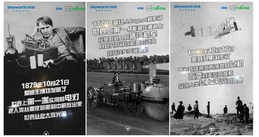 除了預(yù)熱海報,創(chuàng)維還發(fā)布了H5邀請函。H5畫面內(nèi)容講述的是愛迪生第一次發(fā)明電燈泡、世界上第一輛汽車上路、第一次用電話實現(xiàn)通話、第一架飛機(jī)飛上藍(lán)天、以及第一次將兩臺計算機(jī)連接。這些具有跨時代意義的歷史事件,每一次都讓眾人驚呼“wow”,“下一次讓人驚呼wow的將會是什么?敬請期待4.12創(chuàng)維2017五一新品發(fā)布會”的文案暗示著創(chuàng)維這次即將發(fā)布的新品將給中國電視行業(yè)帶來跨時代的變革。