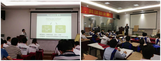 遠(yuǎn)道而來(lái)的意大利Novacolor公司工程師Erald,為在場(chǎng)的學(xué)員介紹了藝術(shù)涂料的歷史及未來(lái)的發(fā)展趨勢(shì),凸顯了藝術(shù)涂料在中國(guó)市場(chǎng)的發(fā)展?jié)摿,為大家描繪了藝術(shù)涂料未來(lái)的發(fā)展前景!同時(shí),著重介紹了Novacolor品牌,使大家對(duì)Novacolor品牌有了更加詳細(xì)的了解。