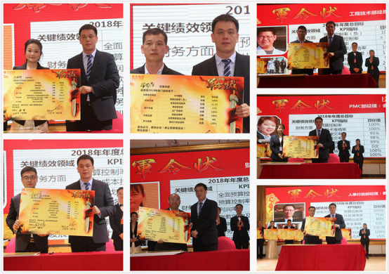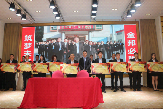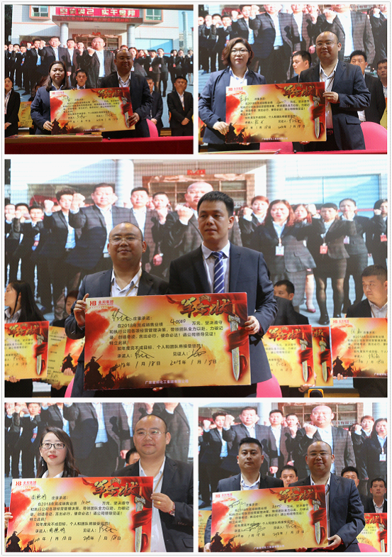 此后,金邦集團軍令狀承接儀式在現場所有金邦人的見證下完成,金邦集團八大部門負責人分別上臺接過自己2018年的軍令狀并喊出洪亮的口號,保證完成金邦集團2018年所有任務!