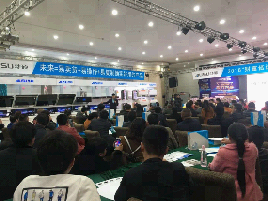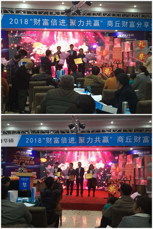 2018年4月15日,河南商丘明錦大酒店內“張燈結彩”,人頭攢動,以科技藍為主色調的布景相互輝映,座無虛席的會場在此交織成一幅科技滿滿而又溫情四溢的畫面,廣東華碩廚房設備有限公司“財富倍進 聚力共贏”商丘站財富峰會隆重拉開帷幕。