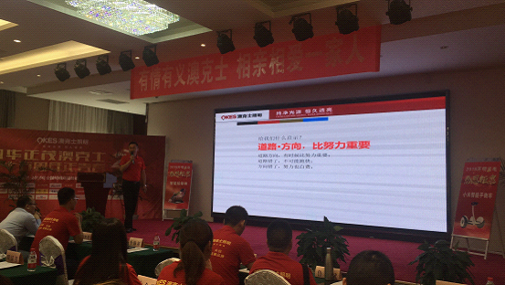 在主持人的介紹引領下,運營商代表吳凱明先生上臺致歡迎辭,對于遠道而來的中山市澳克士照明電器有限公司總部精英團隊表示熱烈的歡迎,對于蒞臨現場的各位經銷商新朋友表示誠摯的感謝!不知不覺間,2018年已過去了將近一半,但是對于澳克士照明來說,每一天都應該是新的開始,都應該以最積極飽滿的姿態去迎接每一天初升的太陽。希望在座各位在參加完今天的會議后,都能有所感悟,有所收獲。吳總更表示今天是非常特別的日子,是一個應該牢記在心的日子,因為在今天,澳克士照明的大家庭迎來了各位“有志之士”,今天將是大家成為“澳克士人”的第一天!