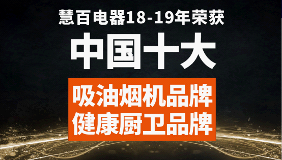 正是憑借強大的制造實力、精準的品牌定位和良好的企業形象,慧百不僅獲得了消費者和代理商的認可,更在含金量極高的“中國十大品牌”評選活動中斬獲“中國十大抽油煙機品牌”、“中國十大健康節能廚衛品牌”的榮譽。
