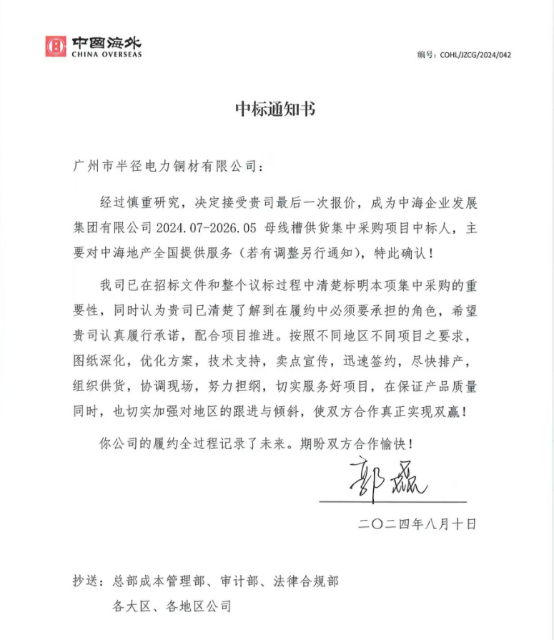近日,廣州市半徑電力銅材有限公司傳來振奮人心的喜訊,公司成功中標中海企業發展集團有限公司母線槽供貨集中采購項目,將為中海地產全國項目提供優質的母線槽產品與服務。這一重大突破不僅標志著半徑電力在行業內的實力與影響力得到了進一步提升,更為公司未來的發展奠定了堅實的基礎。