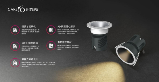 光,不應被束縛。開爾燈具設計支持燈頭0-30°自由調節,滿足不同場景對燈光照射的角度需求,下照柔光如絲,洗墻更為驚艷。針對不同的空間需求,開爾提供15、24、36、55度等多種光束角設計,打造個性化室內光環境。同時,開爾M系列新品配備豐富的內杯配色,如槍黑、砂白、玫瑰金、鍍銀、啞黑,質感細膩,輕松駕馭各種家裝風格。