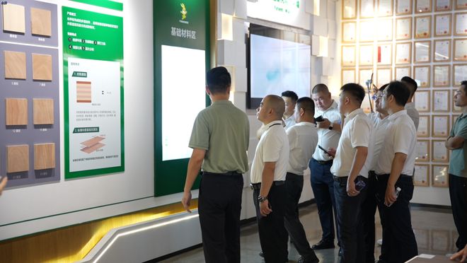 簽約前,中驕集團一行先后參觀了兔寶寶家居產業園、研究院展廳、家居展廳、家具板展廳以及家具板、科技木車間,從環保板材的研發細節、生產工藝,到家居的空間設計、健康理念,每一處都讓中驕團隊對兔寶寶的 “健康家居” 核心優勢有了更直觀的認知。兔寶寶高度契合中驕集團 “環保、健康家裝” 的發展方向,為雙方合作奠定了堅實基礎。