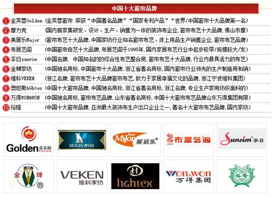 2012年中國十大窗簾品牌權威出榜,金芙蓉強勢登場,相信品牌的力量,品牌是企業最寶貴的無形資產,更是一筆無形的財富。