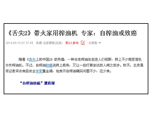 小編其實(shí)想說《舌尖2》這個(gè)節(jié)目又何其只是帶火了家用榨油機(jī),為什么偏偏要將家用榨油機(jī)作為單品揪出來加以炒作?炒作的用意何在?是有意詆毀還是無意為之?