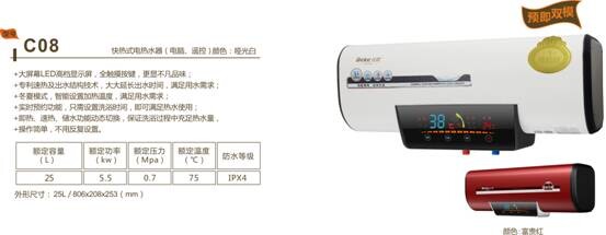 而比克在最高端的市場(chǎng)方面,也有自己的終極武器,也就是去年推出的C08預(yù)即雙模產(chǎn)品,他的智能化水平達(dá)到了一個(gè)新的臺(tái)階,通過(guò)冬夏模式轉(zhuǎn)換動(dòng)態(tài)切換儲(chǔ)水、速熱、即熱三種加熱模式,也可以操作簡(jiǎn)單,不用反復(fù)設(shè)置,配合專利速熱、出水結(jié)構(gòu)技術(shù)和全觸屏按鍵,成為最適合年輕時(shí)尚群體的高端熱水器產(chǎn)品,也被譽(yù)為中國(guó)熱水器未來(lái)的希望之星。