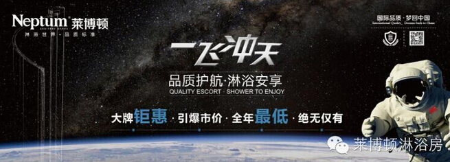 萊博頓品牌以自然、健康、時尚、品質作為產品定位,致力于滿足消費者對于高品質生活的需求,從高品質的衛浴環境而始,提升生活的品位。萊博頓始終堅守“超越自我,引領行業”的信念,不斷改進生產技術,超越同行業最高標準,以前衛的設計和品質的保證,獲得眾多消費者的好評,并于2014年4月成功簽約中國國際航空航天博覽會,成為博覽會唯一的淋浴房贊助商。