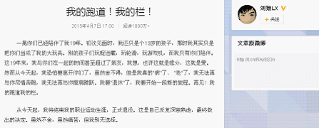 北京時間4月7日17時,你通過個人微博正式宣布退役。