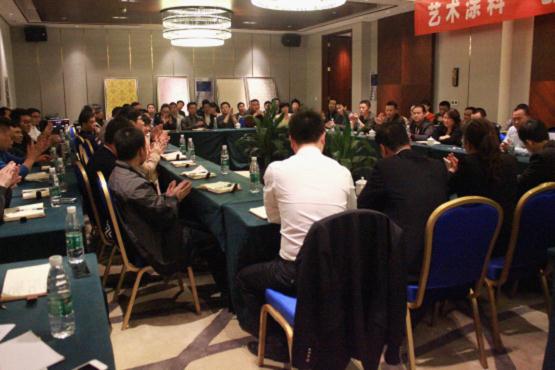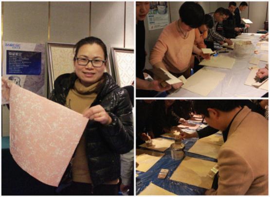 推廣會的實操環節,客戶紛紛動手參與其中。巴德士藝術漆施工如此簡單,分分鐘變藝術大師。