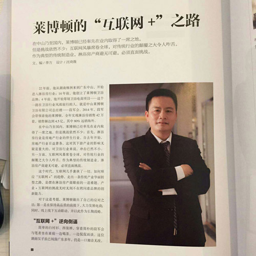 22年前,他從湖南株洲來到廣東中山,開始進(jìn)入淋浴房行業(yè);14年前,他創(chuàng)立了萊博頓衛(wèi)浴品牌;4年前,他開始籌劃衛(wèi)浴電商項(xiàng)目……這個(gè)一路在衛(wèi)浴行業(yè)風(fēng)雨前行的人,就是中山萊博頓衛(wèi)浴有限公司總經(jīng)理——段軍會(huì)。 2014年,段軍會(huì)帶領(lǐng)著他的萊博頓,全年實(shí)現(xiàn)淋浴房銷售42萬套,銷售額達(dá)到4.5億,其中80%遠(yuǎn)銷海外。