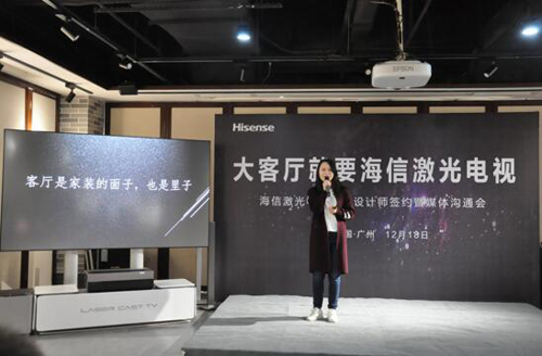 12月19日電 “大客廳就要海信激光電視”,海信激光電視已成為大客廳家裝的新選擇。12月18日,海信在廣州舉辦了海信激光電視金牌設(shè)計師簽約暨媒體溝通會,簽約廣州當?shù)仡H具影響力的高端家裝設(shè)計師代表,推出激光電視私人定制服務(wù)。