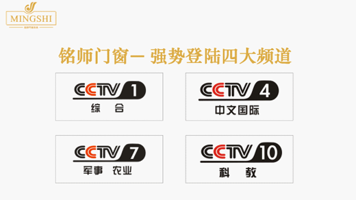 據(jù)悉銘師門窗品牌2017預(yù)計(jì)投入380萬進(jìn)行品牌整合營(yíng)銷傳播。將全面與CCTV-1、CCTV-7、CCTV-10等央視高端平臺(tái),《銷售與市場(chǎng)》、《中國(guó)企業(yè)家》、《中國(guó)品牌經(jīng)理人》、《財(cái)經(jīng)》、《中國(guó)人物周刊》、《中國(guó)品牌周刊》、人民日?qǐng)?bào)(人民網(wǎng))、《網(wǎng)易》品牌家居、《中國(guó)500強(qiáng)》品牌招商、鳳凰衛(wèi)視《鳳凰網(wǎng)》、新浪、搜狐、網(wǎng)易、中國(guó)建材家居網(wǎng)、中國(guó)品牌網(wǎng)、百度、360等近500家媒體,進(jìn)行品牌深度傳播。