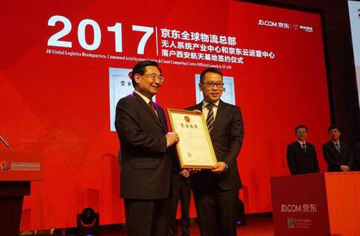 在全球物流總部落地方面,京東集團將充分利用西安航天基地提供的科技、空域、人才資源,打造集倉儲、配送、結算、大數據、云計算等現代物流業務于一體的智慧化物流產業中心。同時,發揮龍頭企業的規模效應和示范效應,積極引導上下游產業鏈企業進駐航天基地,從而形成智慧物流、京東電商、京東云等產業集群,推動京東集團全產業體系在航天基地的集聚發展,力爭在十三五末形成產值超過1000億元的產業集群,極大地帶動區域就業、稅收,并促進我國高科技和物流人才的儲備和培養,輻射帶動西安乃至陜西的產業轉型,為社會創造更大的經濟效益和社會效益。西安航天基地將在京東物流總部的辦公、倉儲用地、京東亞洲一號建設等方面給予全面支持,促進京東物流基礎設施轉型發展。