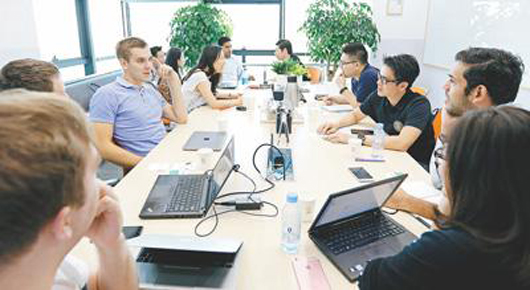 滴滴的合作伙伴歐拉、達亦飛、格步、九九約車、格令等公司代表在滴滴總部交流新構思。