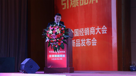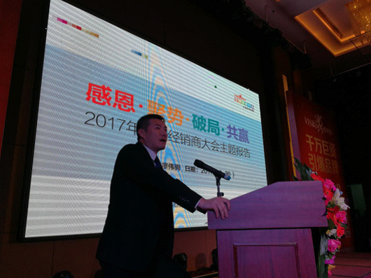 大會開始,中山市威斯堡電氣有限公司總經理廖偉駒先生在所有經銷商家人們期待的目光中走向舞臺,做“感恩·聚勢·破局·共贏——2017年威斯堡主題報告”。