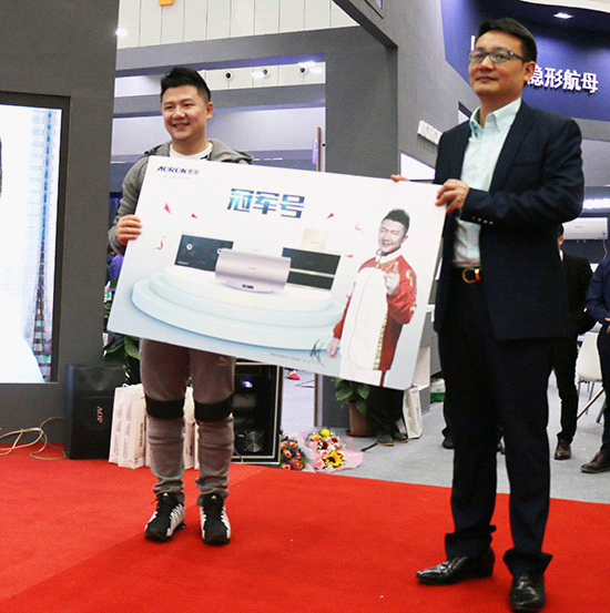 隨著簽約儀式禮成,又一波興奮席卷贈送冠軍號產品環節。除了可以近距離與奧運冠軍陳一冰交流拍照,還有機會獲得奧運冠軍陳一冰簽名的產品,這讓現場觀眾著實興奮。至此,“冰王子代言奧榮電器”這一佳話已被傳開。同時也讓奧榮電器成為了本屆家電博覽會的贏家。