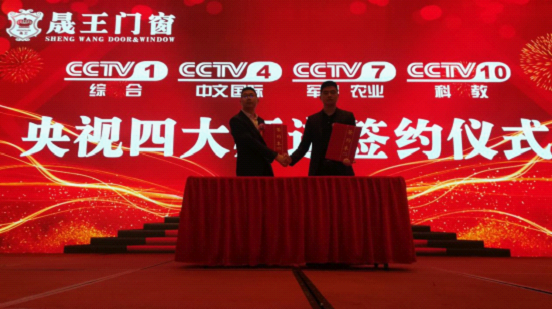 2018年晟王門窗為極力打造強勢知名品牌,晟王千萬斥資登錄央視頻道,拉伸品牌溢價力!本次會議上,晟王門窗王董事長與央視代表人在萬眾矚目中簽下了品牌戰略合作協議。雙方握手合影,在鏡頭前留下了極具歷史意義的一刻,在場經銷商們紛紛拿起手機記錄下來。央視簽約,象征這晟王門窗的品牌戰略規劃正式落地!未來,全國乃至全球觀眾將會通過央視看見“智慧與顏值”并存的晟王門窗。